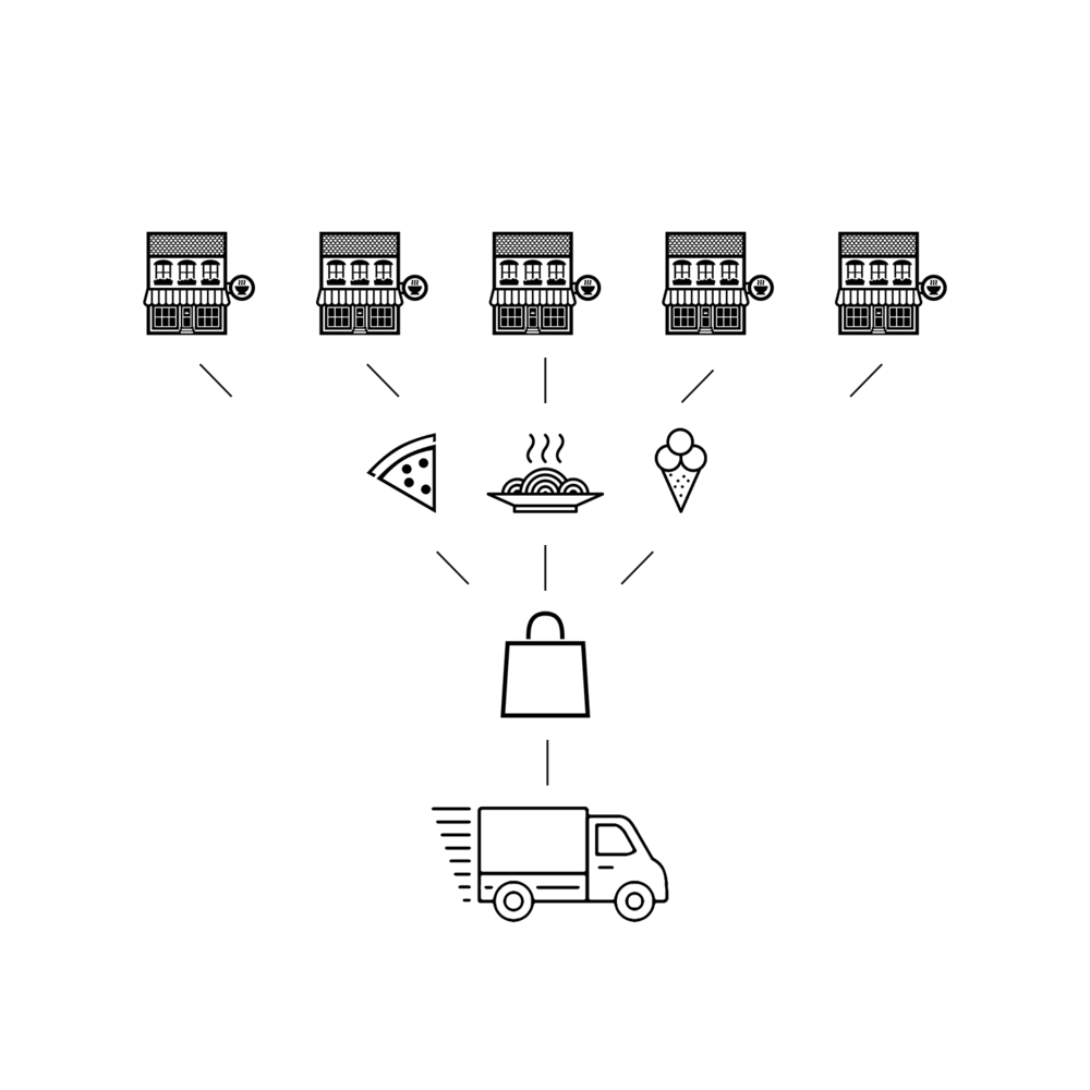 We work with brands you know and trust. Mix and match from any restaurant and we'll bundle it and bring it to your door in one single delivery.
