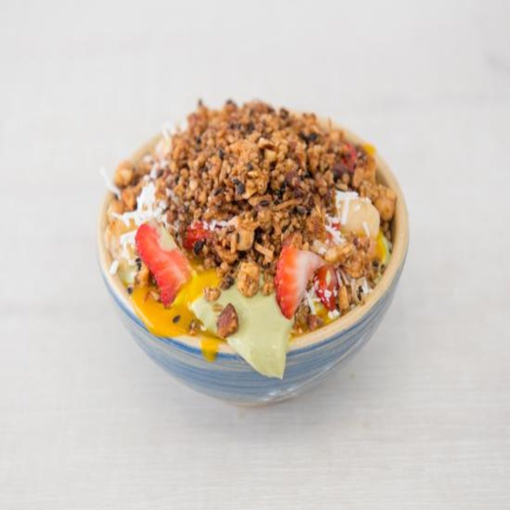 Served with black sesame granola, coconut, banana, strawberry, chia seeds, mango sauce. Choice of Acai or Matcha Green Tea yogurt flavor